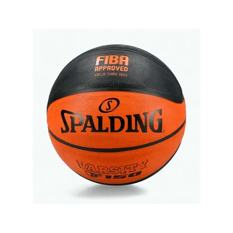 Balón de baloncesto Spalding Varsity TF-150 diseñado para jugadores principiantes y recreativos, ideal para uso en exteriores e interiores gracias a su alta durabilidad y buen agarre.