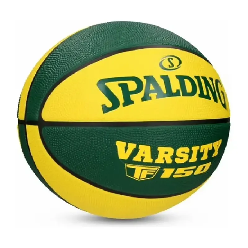 Balón de baloncesto Spalding Varsity TF-150 diseñado para jugadores principiantes y recreativos, ideal para uso en exteriores e interiores gracias a su alta durabilidad y buen agarre.