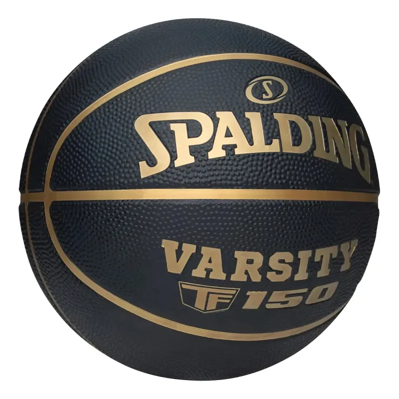 Balón de baloncesto Spalding Varsity TF-150 diseñado para jugadores principiantes y recreativos, ideal para uso en exteriores e interiores gracias a su alta durabilidad y buen agarre.