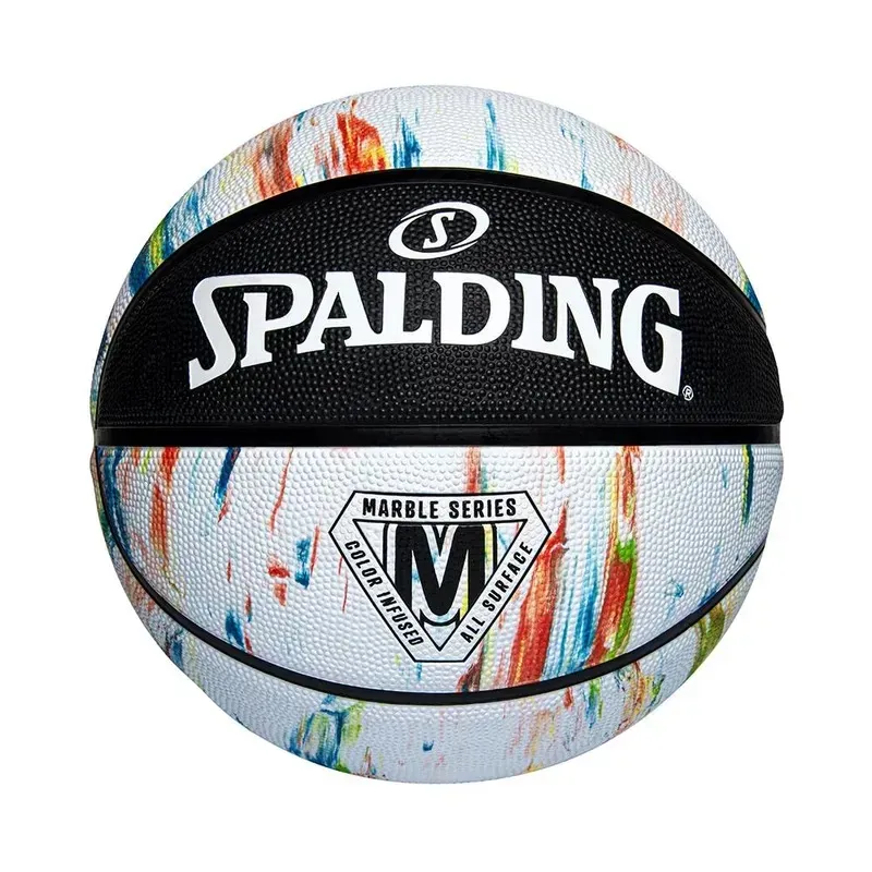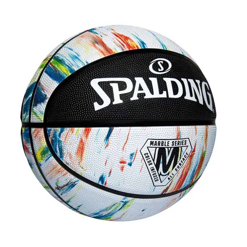 Balón de baloncesto Spalding Marble Series diseñado para uso exterior, destacando por su resistencia y su exclusivo diseño marmoleado que hace que cada balón sea único.