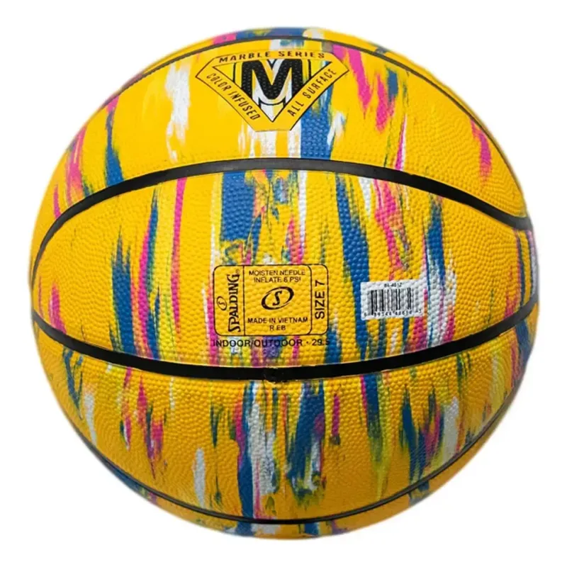 Balón de baloncesto Spalding Marble Series diseñado para uso exterior, destacando por su resistencia y su exclusivo diseño marmoleado que hace que cada balón sea único.