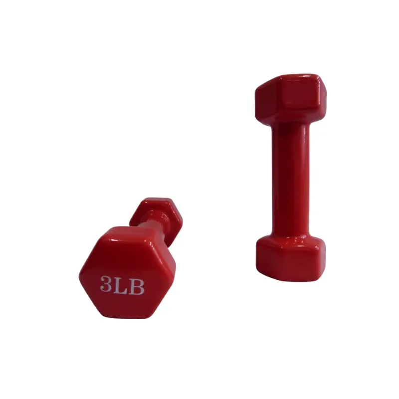 Mancuerna de 3 libras con recubrimiento en vinilo, ideal para ejercicios de tonificación ligera, rehabilitación y entrenamiento funcional de bajo impacto. Perfecta para principiantes y rutinas de alta repetición.